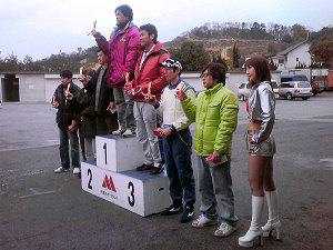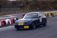 | 天気は晴れ、しかし11月下旬ともなれば名阪スポーツランドは少し肌寒い一日でした 太陽は出ているのに気温が上がらない、必然的に路面温度もかなり低い状態 Sタイヤクラスはタイヤが暖まらずコントロールが苦しそうでした 今回はCコースということでテクニカル+ハイスピードというコースレイアウトを設定 前半部分が複雑でしたので練習走行ではミスコースが多く見られましたが、本トライでは修正し結構攻め込まれていた模様 ただ残念なことに1台転倒車両がでました パイロンターン時にバランスを崩して転倒、ゆっくりと横倒しになったのでドライバーにケガは無し 何と割れたガラス類をテーピングして本トライを継続して走行されていました 本日のベストトライ賞を差し上げたいです(ゼッケン126番 S120Vアトレー) 午前中に練習1本、本トライ1本目を消化 午後からは本トライ2本目を1台づつ走ってもらうつもりでしたが、雲行きがあやしくなってきたのでコース上に2台ラップさせて競技時間短縮へ 案の定、表彰式が始まる頃に雨雲が立ちこめ、終わる頃には降ってきました 今年は本当に「雨」が多いイベントでした 当社主催では2009年度最後のイベント 今回はクラス分けを細かく設定しエントリーの動向をチェック 今後のイベント開催の参考にさせていただきます |