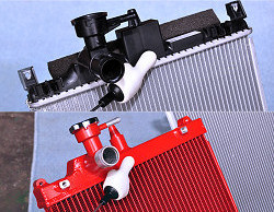 また上下にあるコアタンク部分も限界まで大きくし、さらにフラットにすることにより流動性(冷却水の流れやすさ)も確保