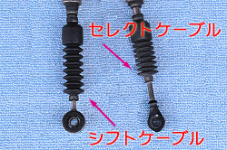 シフトリンケージにはケーブルが2本接続されていますが、セレクトケーブル側はニュートラルモードレバーですので純正のままで交換の必要はありません